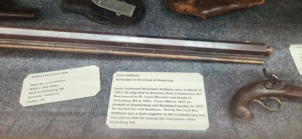 Charles was born and raised in Vicksburg, and that local connection shows up all over the museum. One of the pieces he’s most proud of is a rifle that was made right here in town.