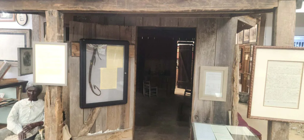 There’s also a small slave house exhibit. When you step inside, you hear recorded voices. He explained, “When you go in there, the voices in there talking are actual slaves that they interviewed.” It’s quiet in there, and people tend to slow down without being told to.